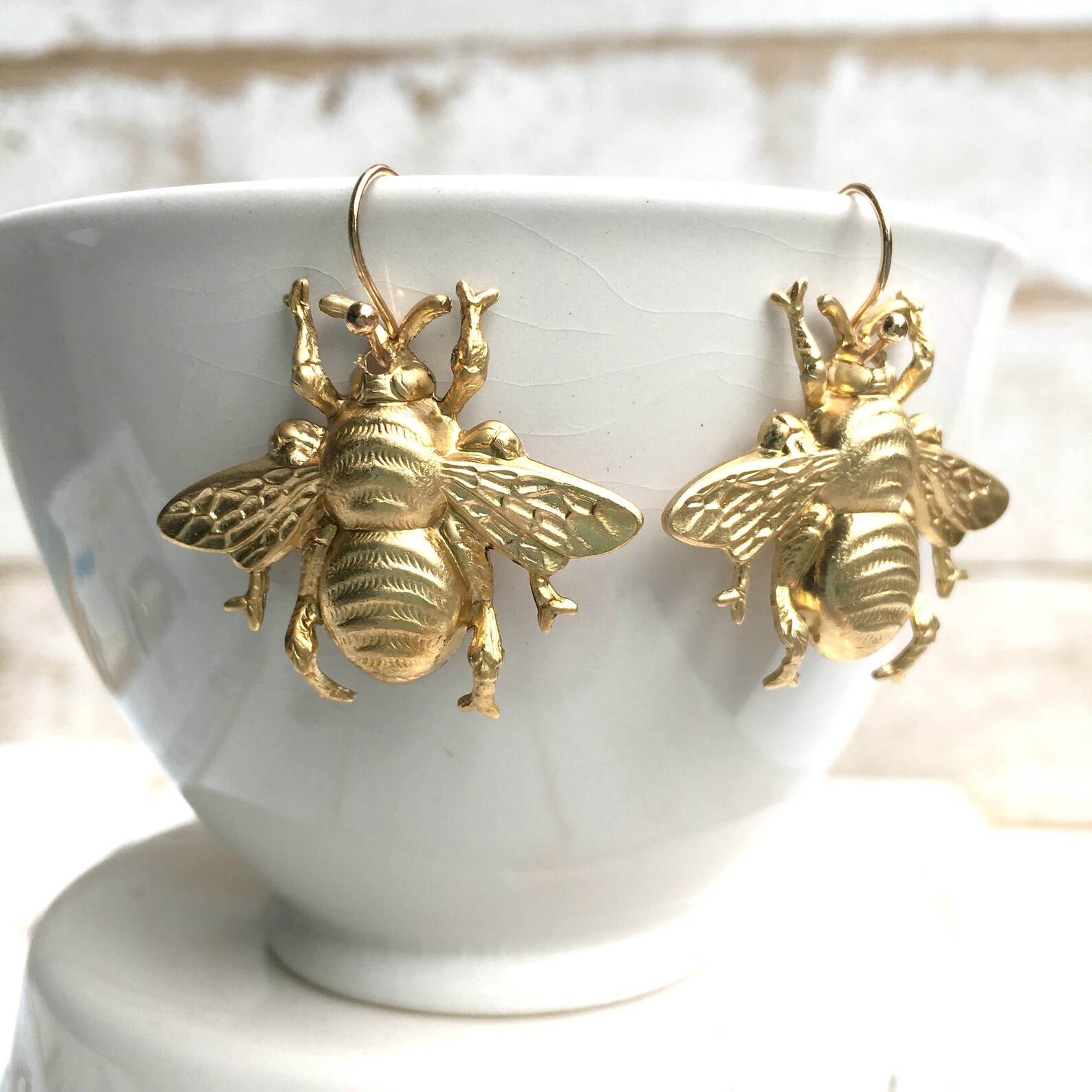 Bumble Bee Earrings Honey Bee Jewellery Gold Drop Earrings - Etsy UK