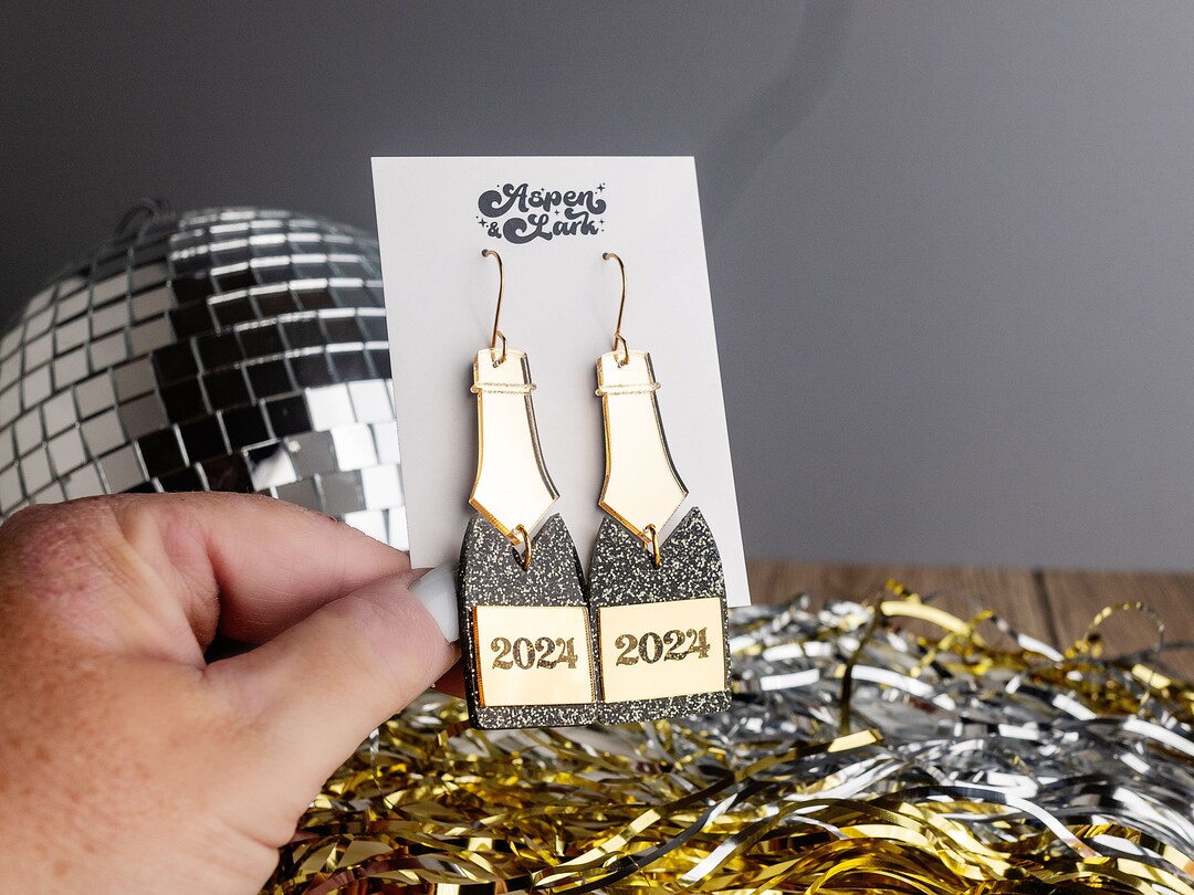 New Years Eve Earrings Champagne Bottle Earrings 2024 - Etsy