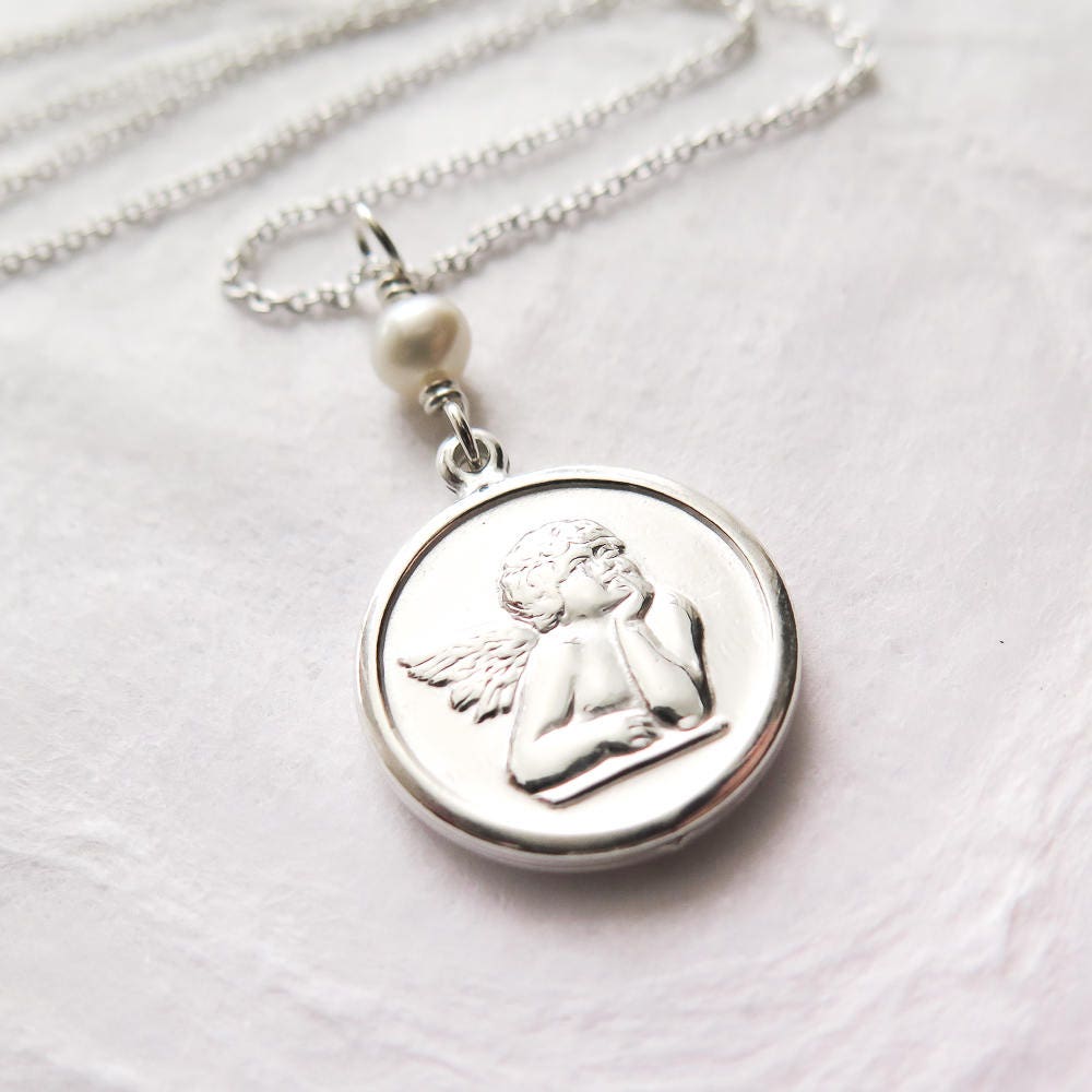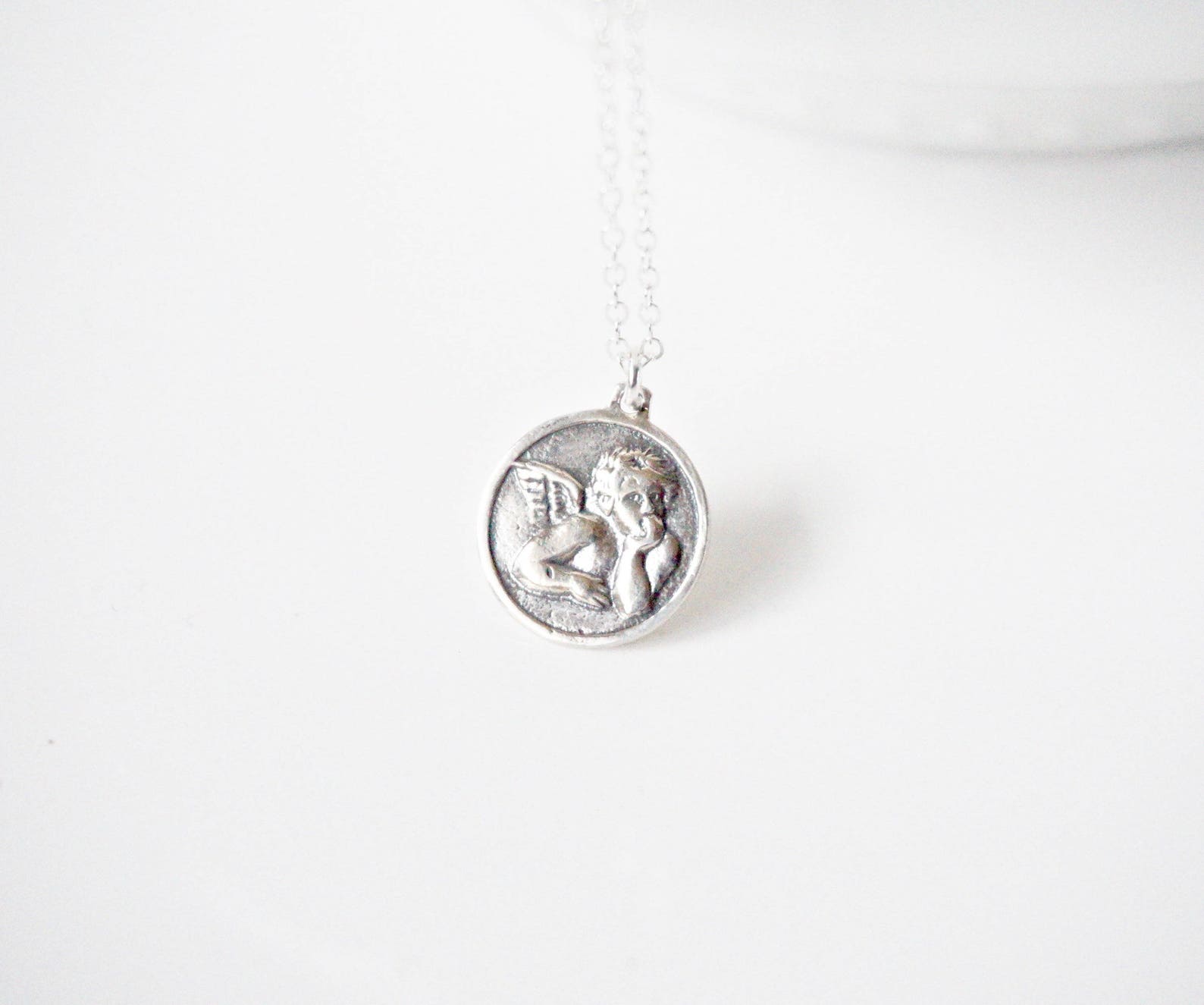 Guardian Angel Necklace Silver Angel Medallion Necklace | Etsy