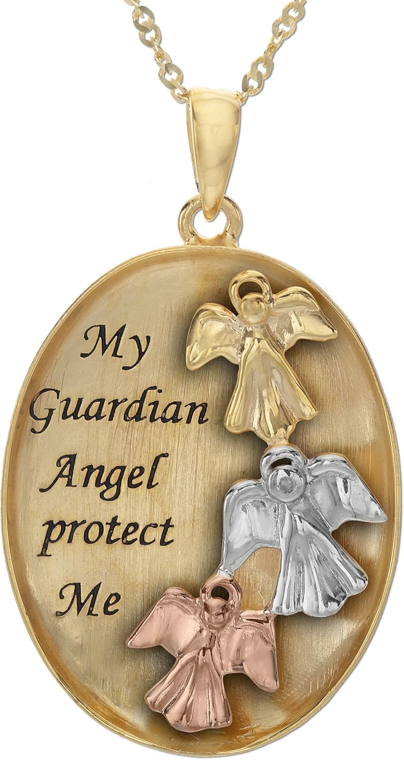 Amazon.com: Guardian Angel Medallion Pendant in 14K Two-Tone Gold-Plated Sterling Silver