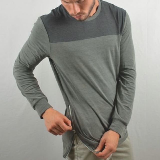 Zipper pullover long sleeve tee