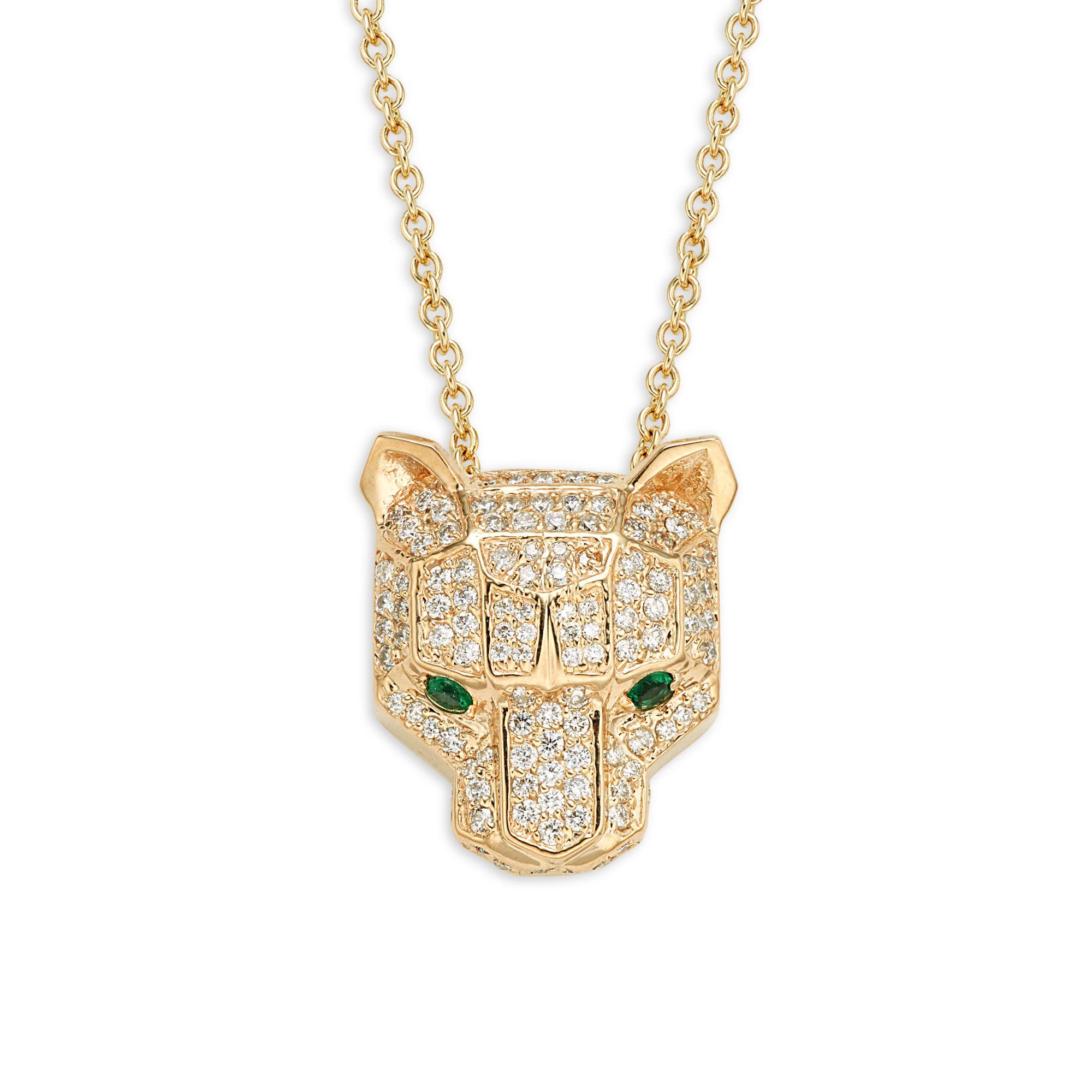 Effy 14k Yellow Gold, Diamond & Emerald Panther Pendant Necklace in Metallic - Lyst