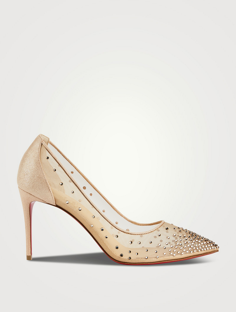 CHRISTIAN LOUBOUTIN Follies Strass 85 Mesh Suede Pumps | Holt Renfrew
