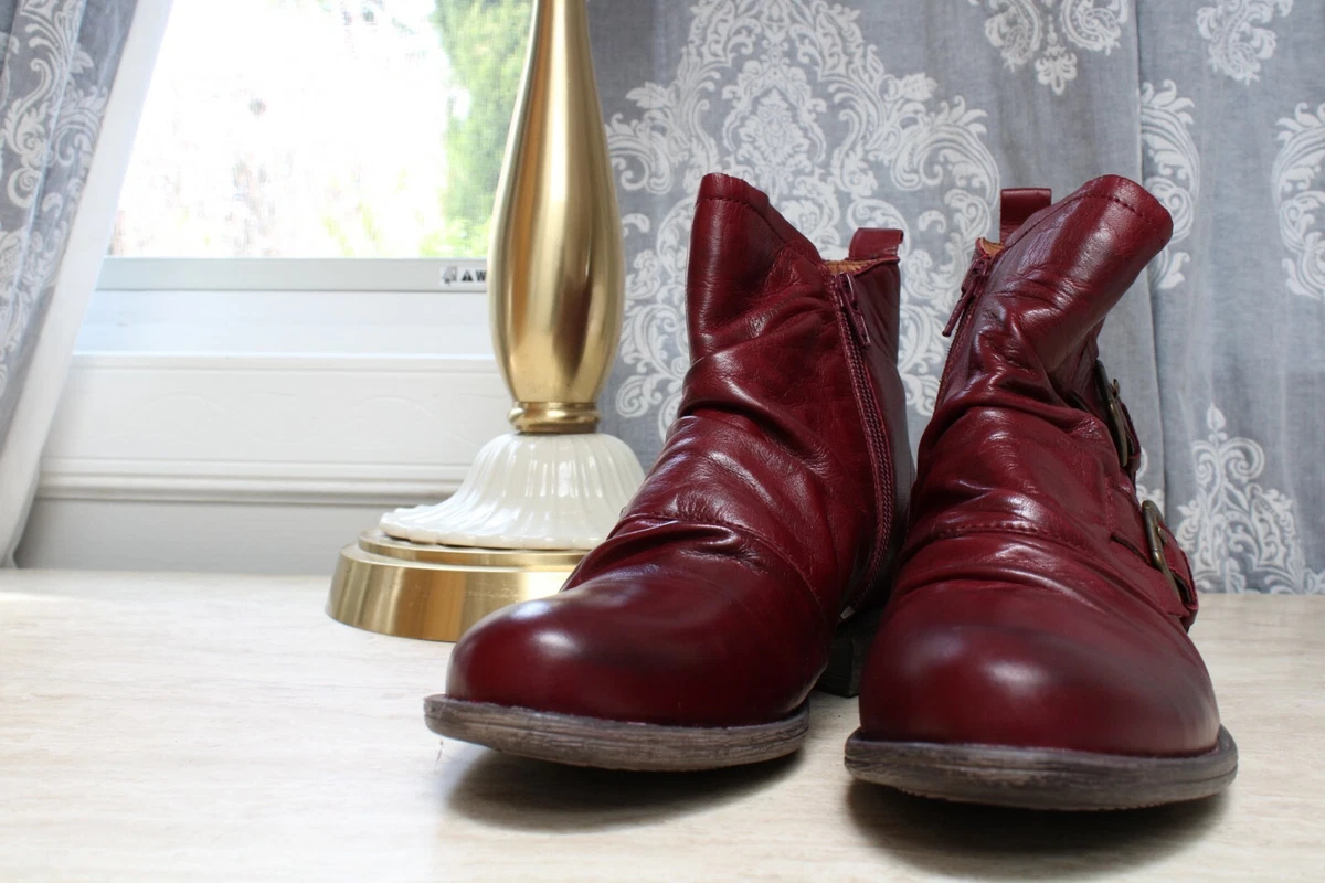 Miz Mooz - Leather Buckle Ankle Boots - Leslie - Burgundy Red - EU 38 Wide 7.5-8 | eBay