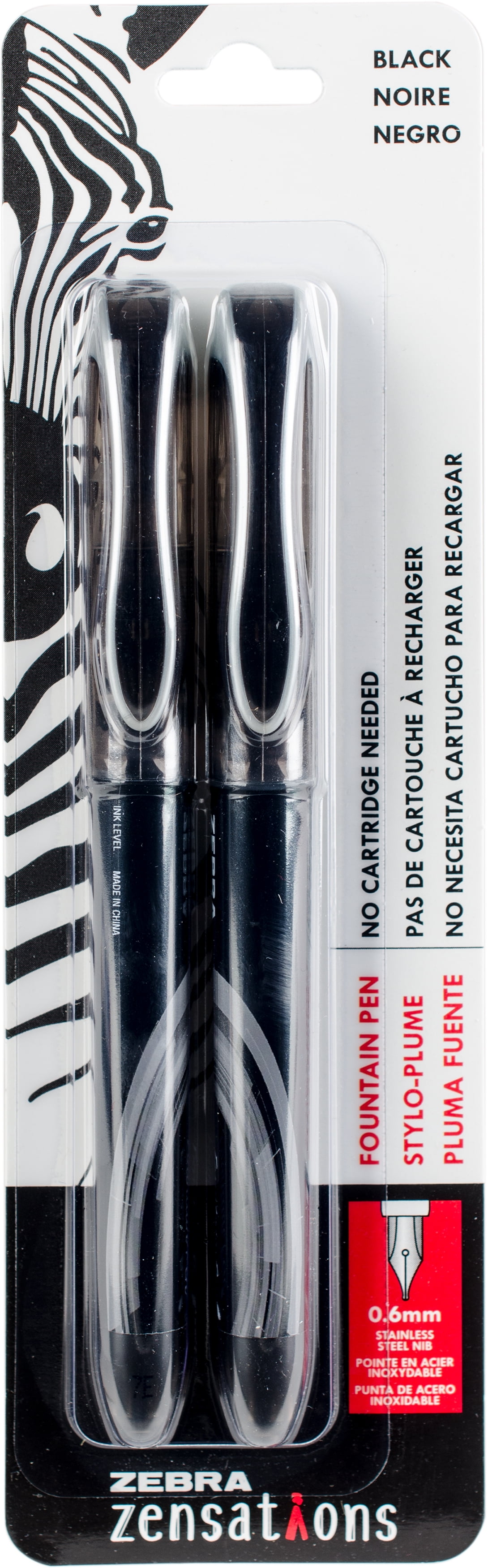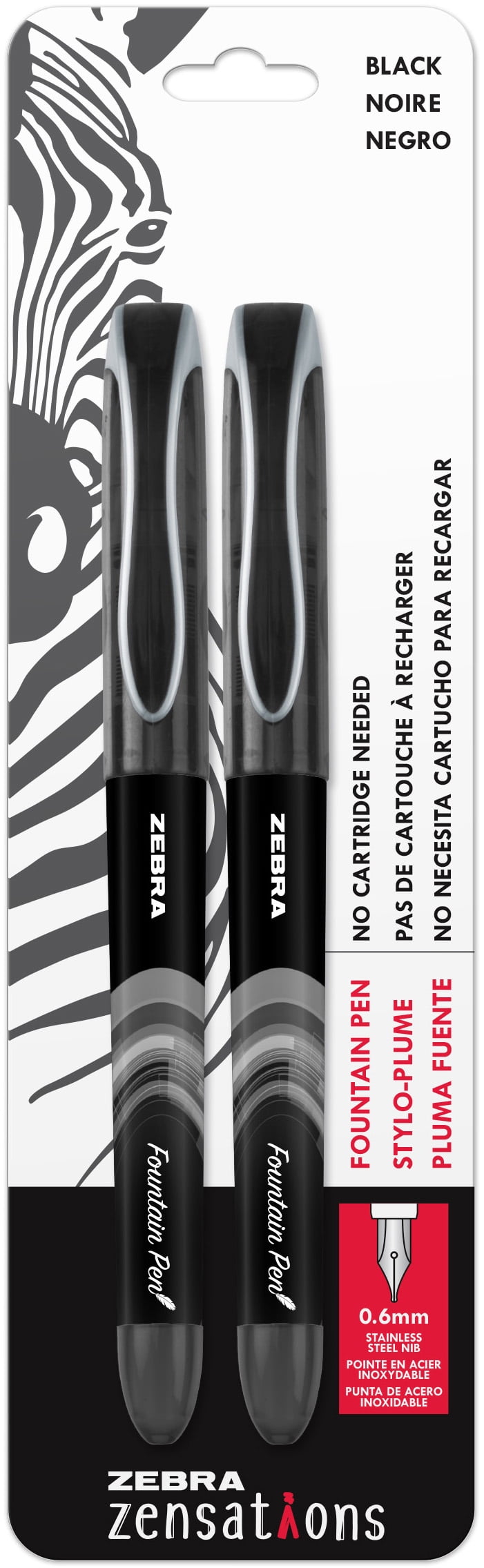 Zebra Pen Zensations Fountain Pen, Fine Point, 0.6mm, Black, Non-Toxic Ink, 2 Pack - Walmart.com