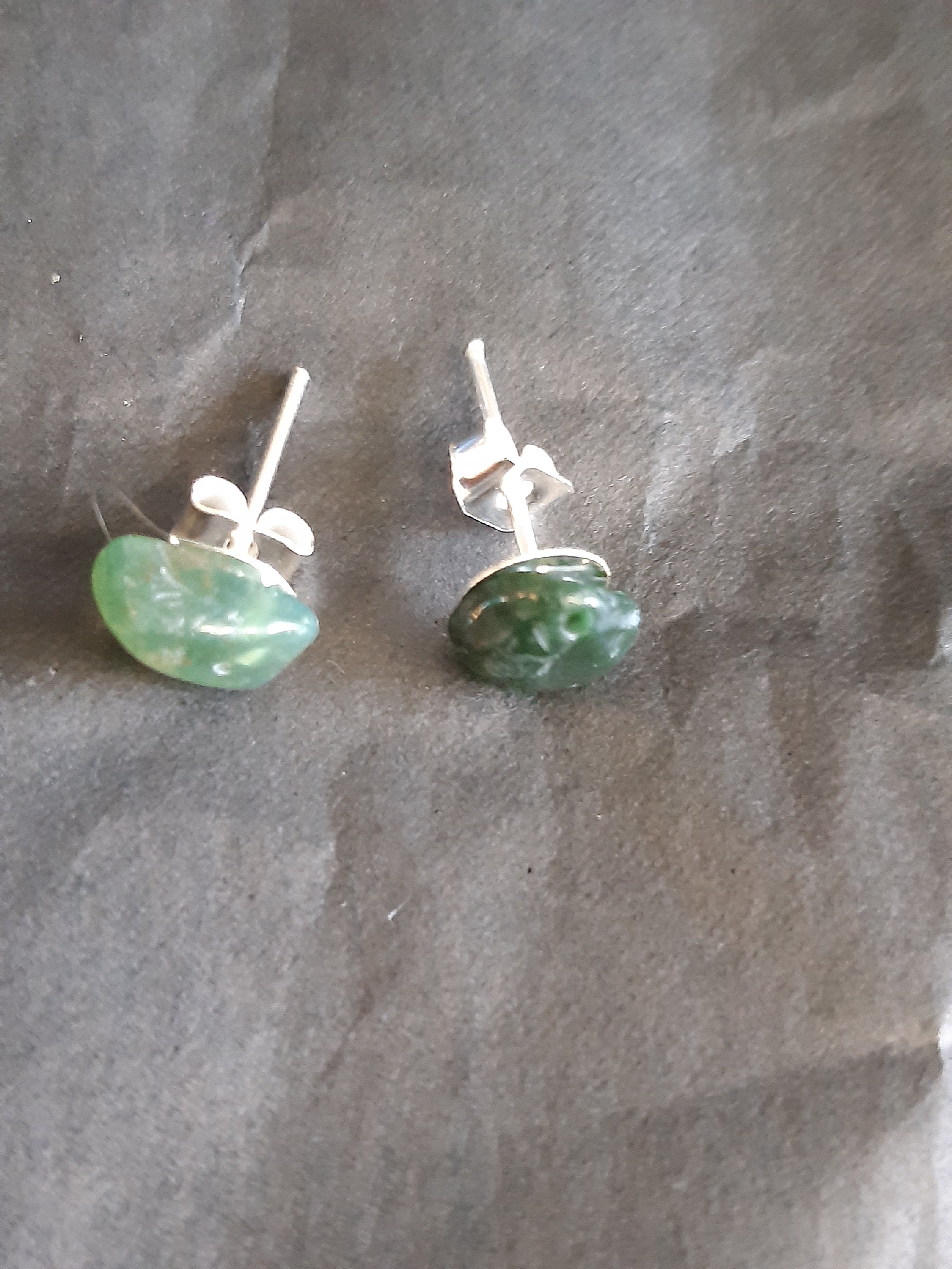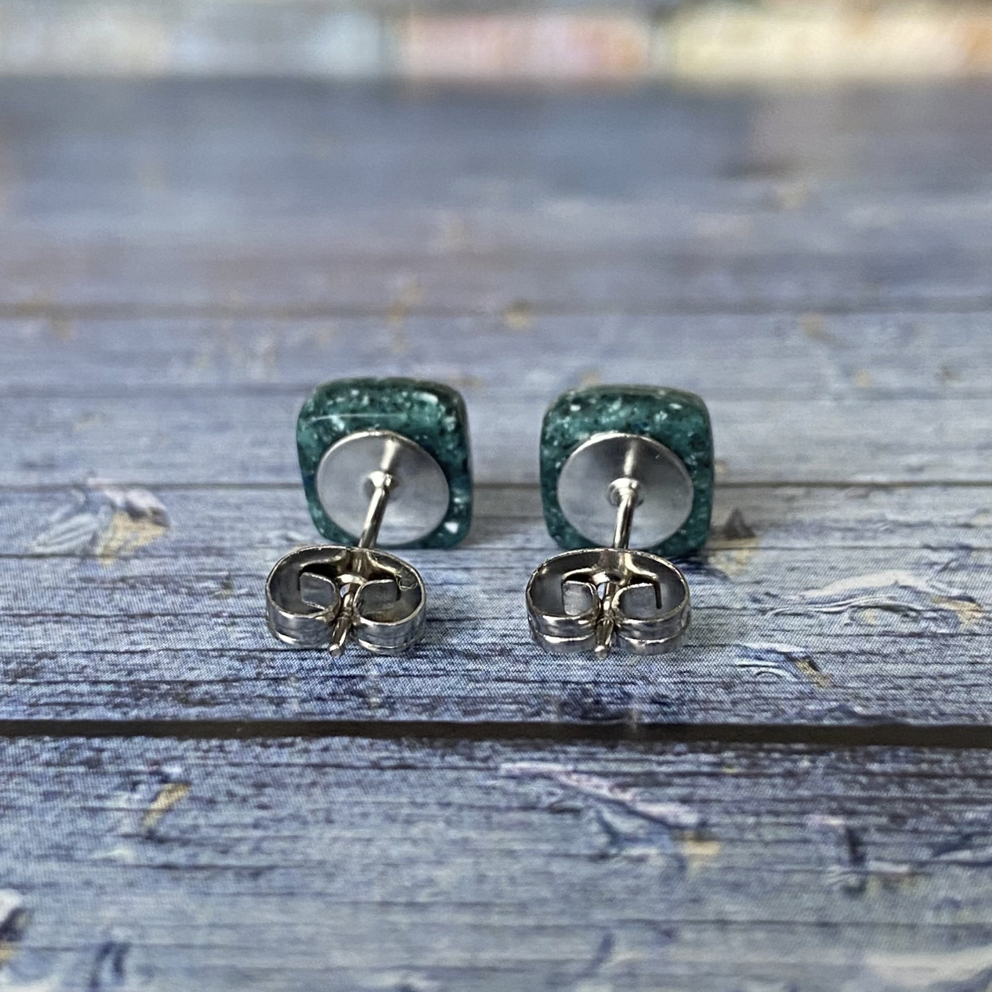 Petite dark green enamel and sterling silver stud earrings â Jewelry by Glassando