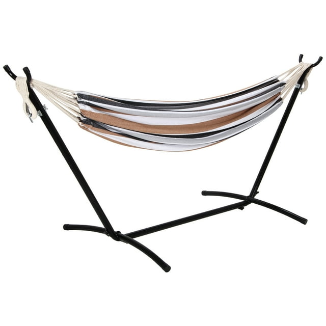 Ollieroo Double Hammock with Space-saving Steel Stand and Carrying Case 450lb Capacity Coffee