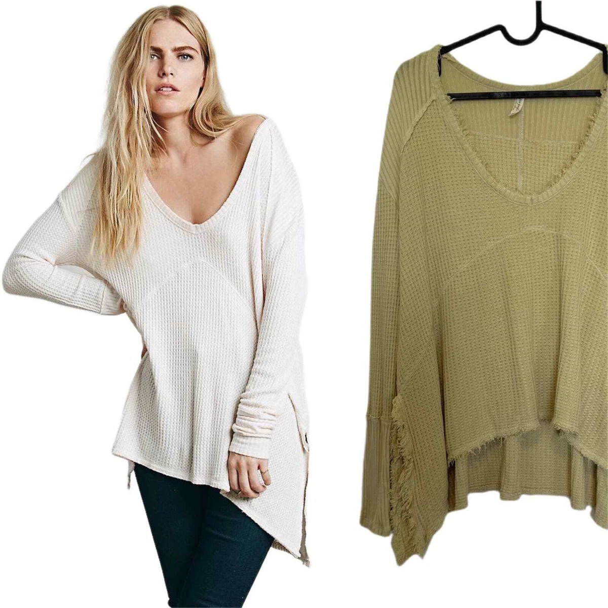 Free People Sunset Park Thermal Distressed Waffle Knit Size Small Yellow | eBay