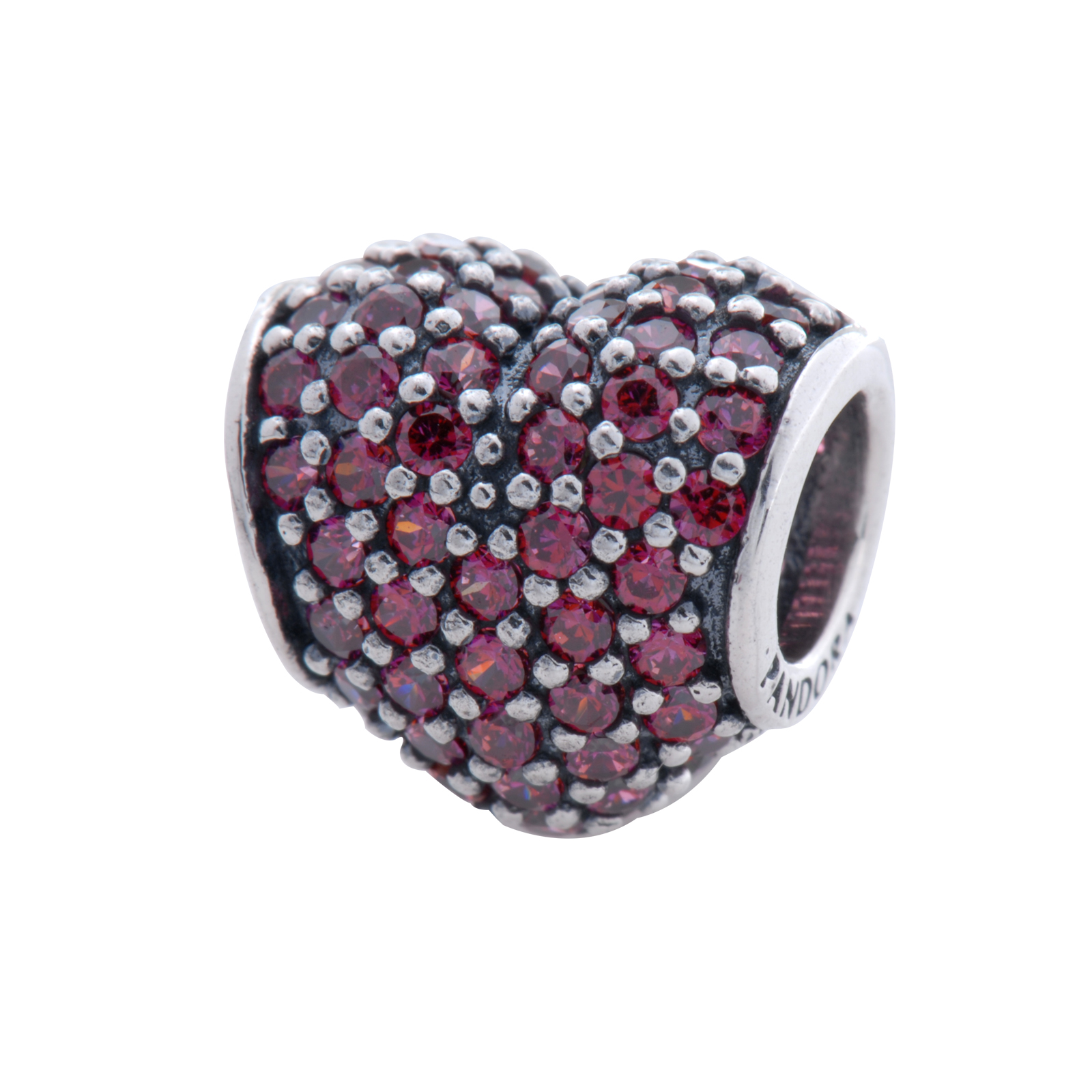 PANDORA - Pandora Red Pav Heart Charm with Red Cubic Zirconia in 925 Sterling Silver, 791052CZR