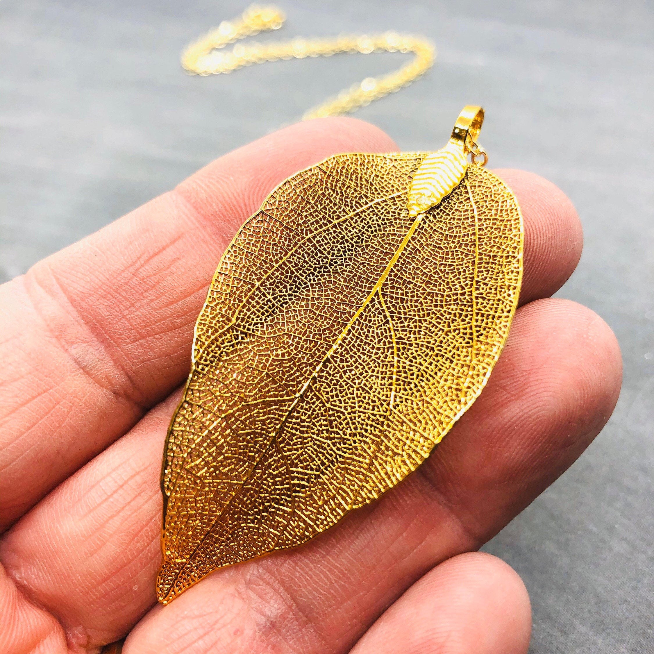Real Leaf Necklace Gold Filled Natural Leaf Pendant Long | Etsy