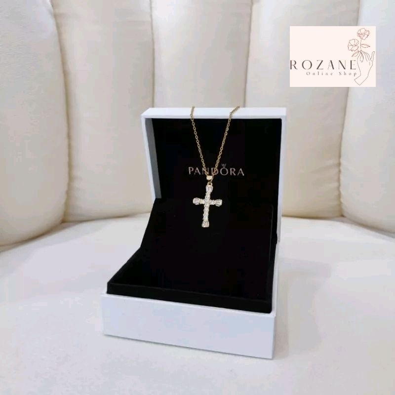 Pandora Cross Diamond Studded Gold Necklace | Shopee Philippines