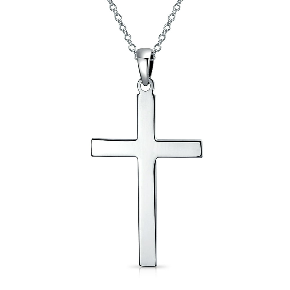 Bling Jewelry - Personalize Engravable Religious Plain Simple Flat Cross Pendant Necklace for