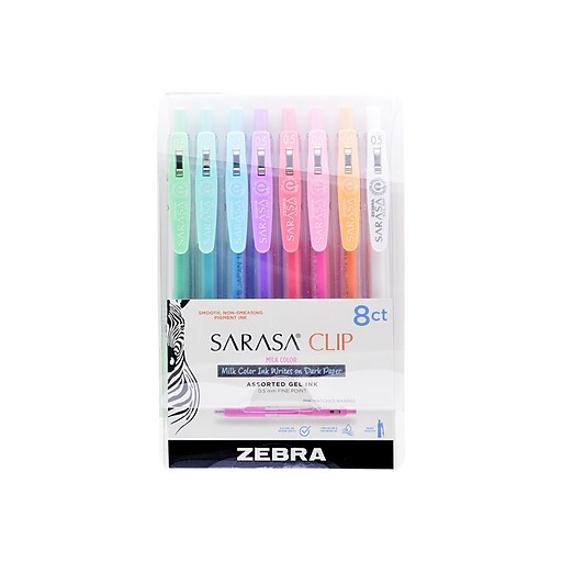 Zebra Sarasa Clip Milk Retractable Gel Pens, Fine Point, Assorted Inks, 8/Pack (48908) | Staples