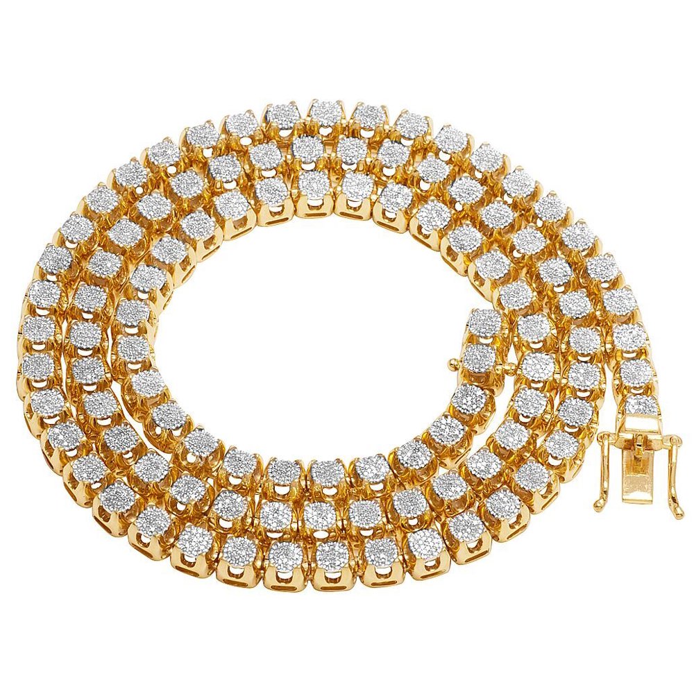 Jewelry Unlimited - Mens 10K Yellow Gold Real Diamond 6MM Cluster Tennis Chain Necklace 6 1/5 Ct