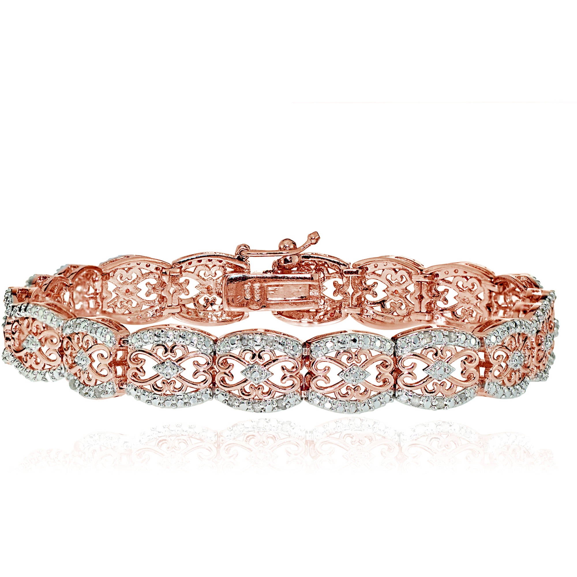 0.25 Carat T.W. Diamond Rose Gold-Tone Filigree Tennis Bracelet - Walmart.com