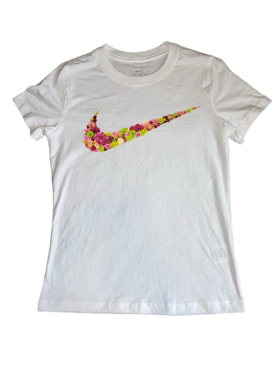 Nike Tee women's white floral Swoosh crew neck logo tee shirt size XS | eBay