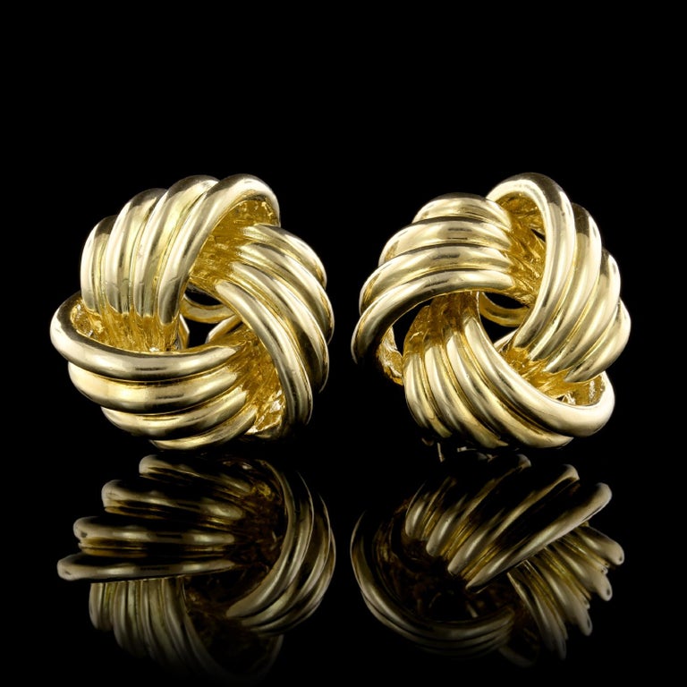 Tiffany and Co. 18 Karat Yellow Gold Love Knot Earrings at 1stDibs | tiffany love knot earrings