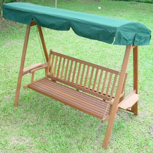 #>Cheapest Garden / Patio 3 Seat Bench Hammock w / Hardwood Frame & Green Sunshade Canopy Easter