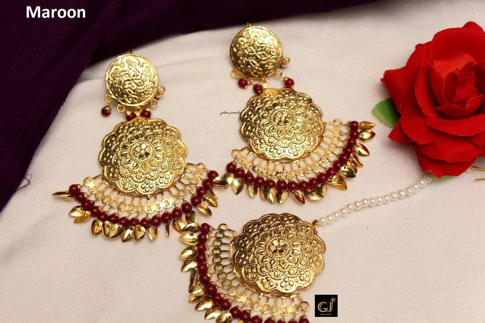 Punjabi Pipal Patti Earrings Tikka Set GoldDark | Etsy