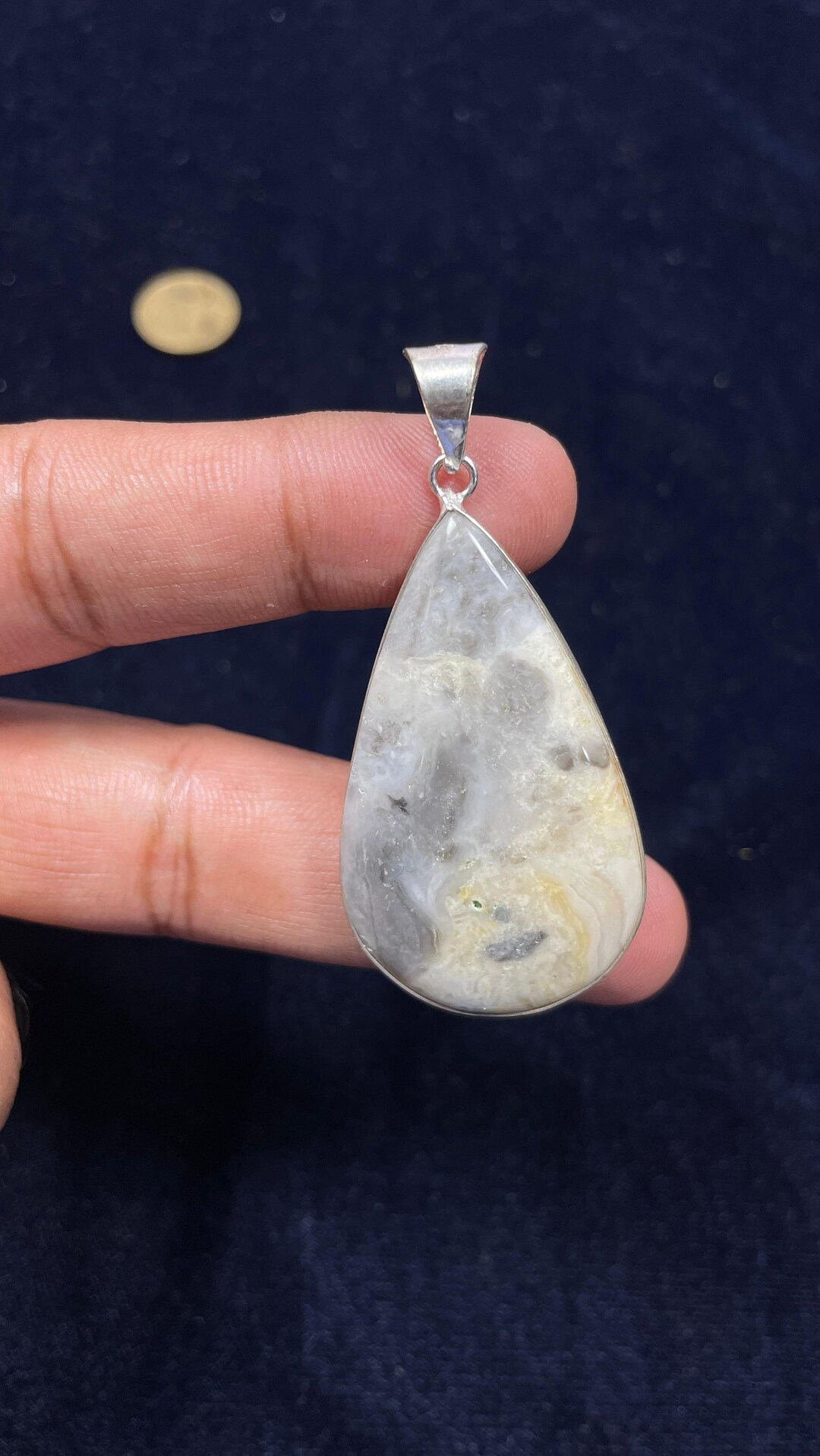 White Ocean Jasper Gemstone Silver Plated Pendant - Etsy