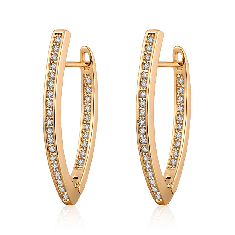 New Design Geometric V-shaped Micro Pave Zircon 14k Gold Plated Large Hoop Earrings Jewelry
