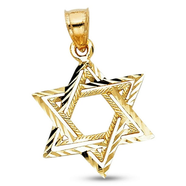 GemApex - 14k Yellow Gold Star Of David Pendant Jewish Charm Polished Solid Religious Design 9 x