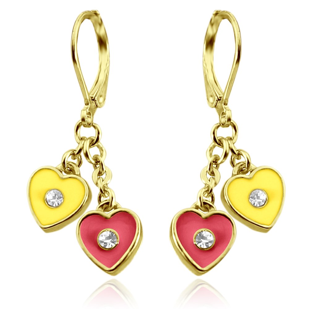 Young Girls Jewellery: Earrings for Kids, Double Heart 18k Gold Plated, Leverback Earrings