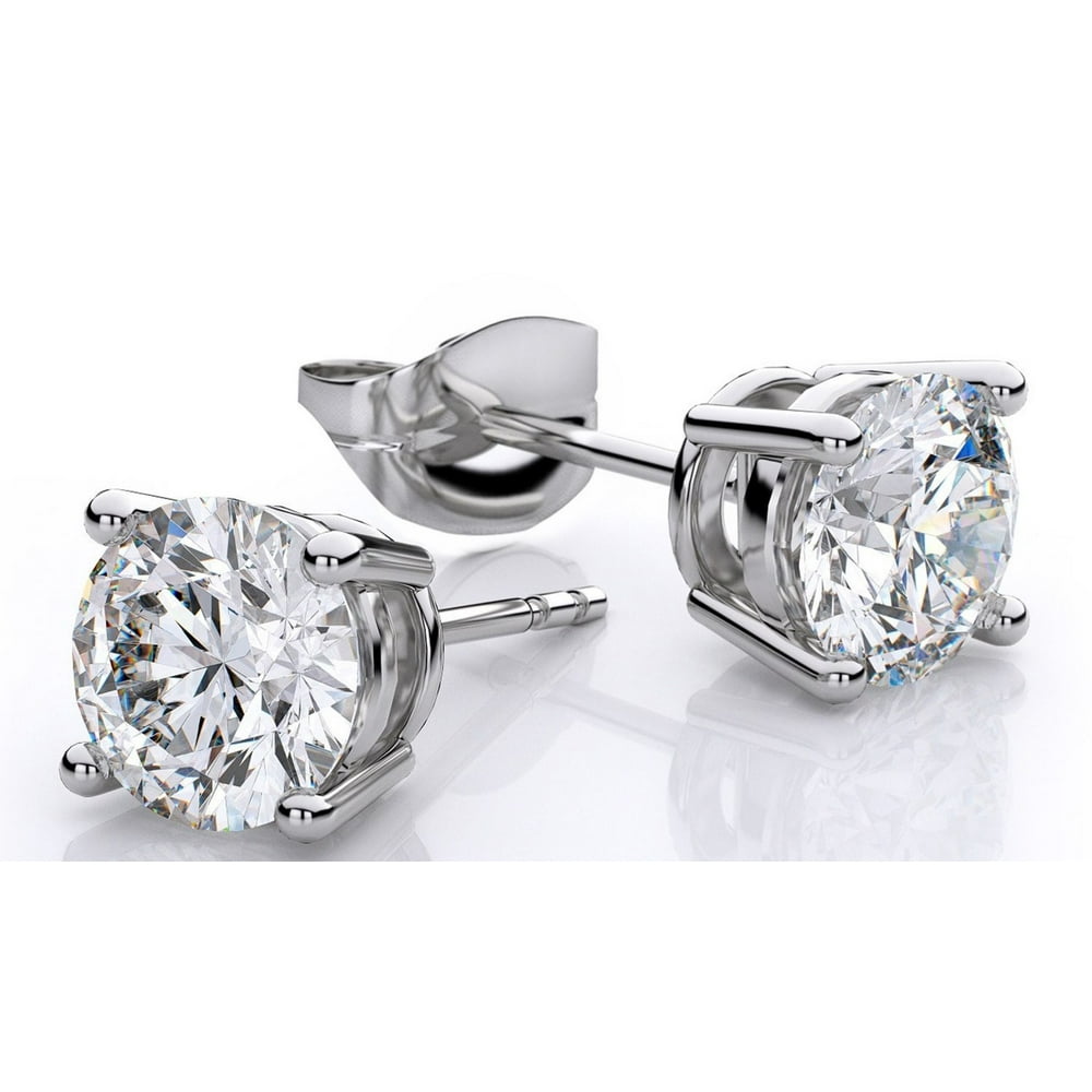 Diamond Princess - Genuine 1 Carat Natural Solitaire Round Cut Diamond 4 Prong Post Back Studs