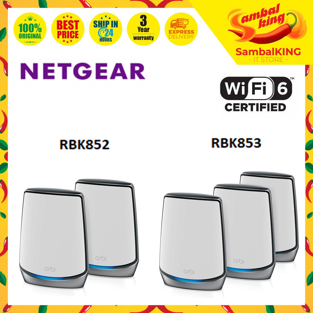 NETGEAR ORBI RBK852 | RBK853 AX6000 TRI-BAND MESH WIFI 6 SYSTEM 2 PACK/3PACK Similar to XD4 XT8