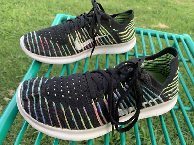 Women's Nike Free Rn Flyknit Black Multicolor/Rainbow Size 9 US Gently Used | eBay