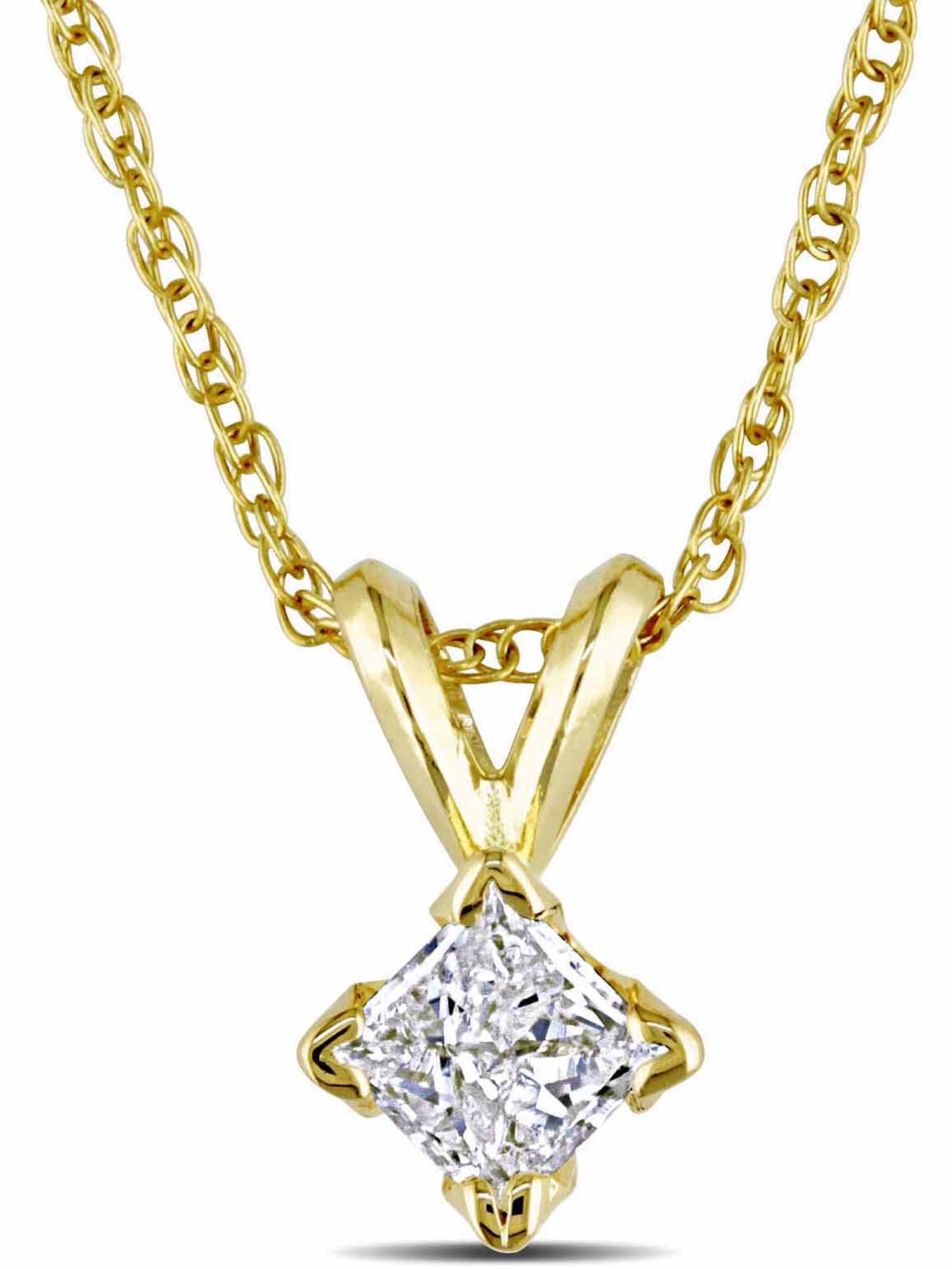 Miabella - Miabella 1/4 Carat Diamond 14kt Yellow Gold Solitaire Pendant Necklace - Walmart.com