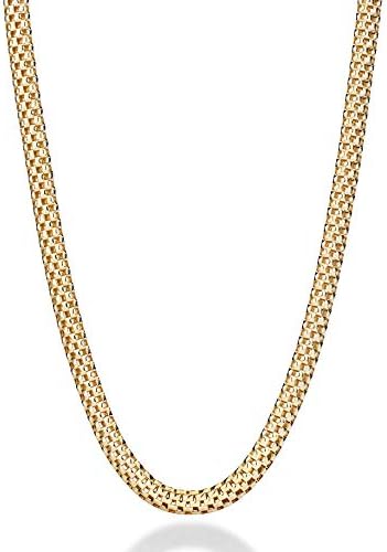 MiaBella 18K Gold Over Sterling Silver Italian 4mm Mesh Link Chain Necklace for Women, 13+2.5