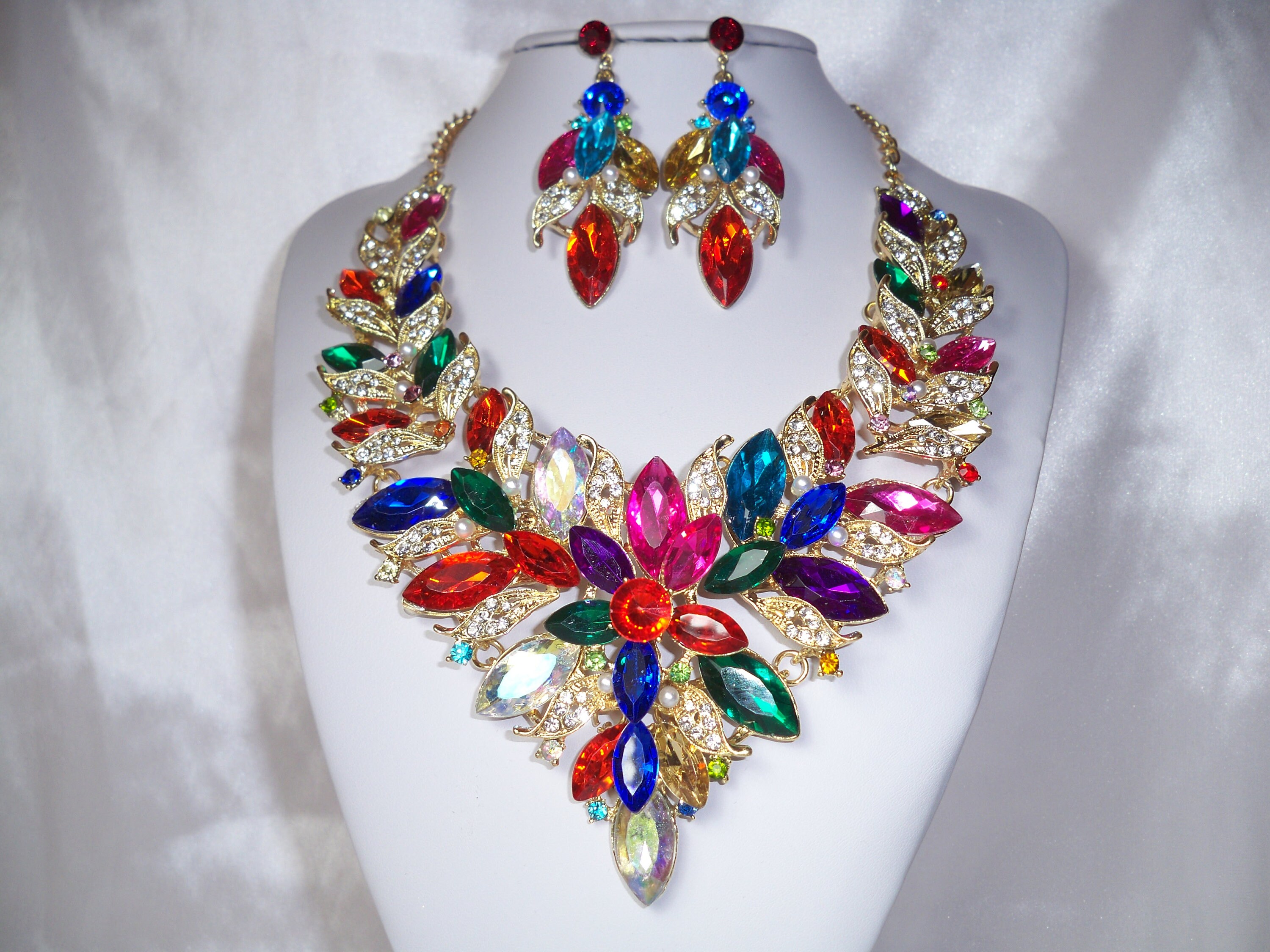 Multi color necklace set rhinestone necklace setwedding | Etsy
