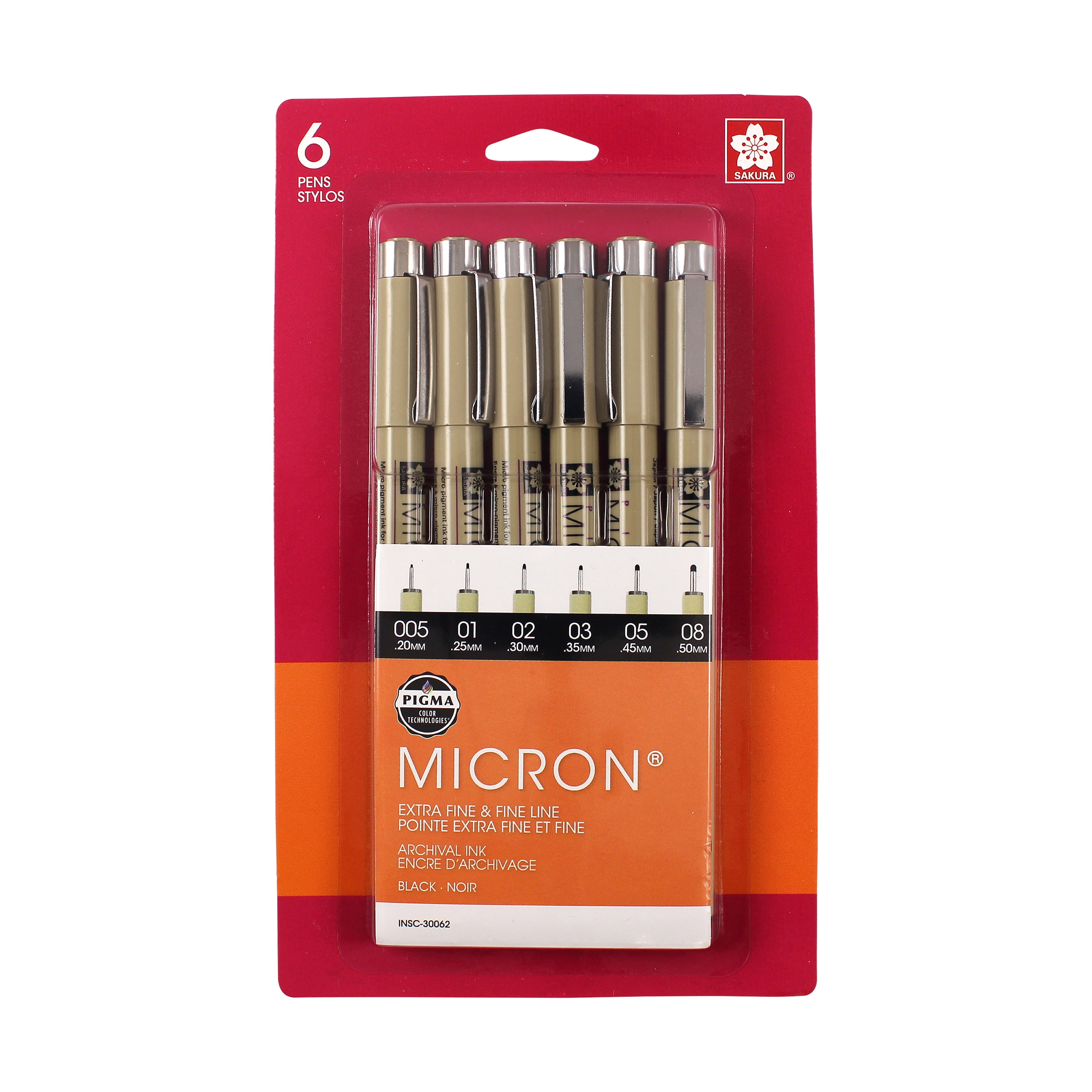 Pigma Micron Fineliner Pens, Archival Black Multi Tip Sizes, 6 Pack - Walmart.com
