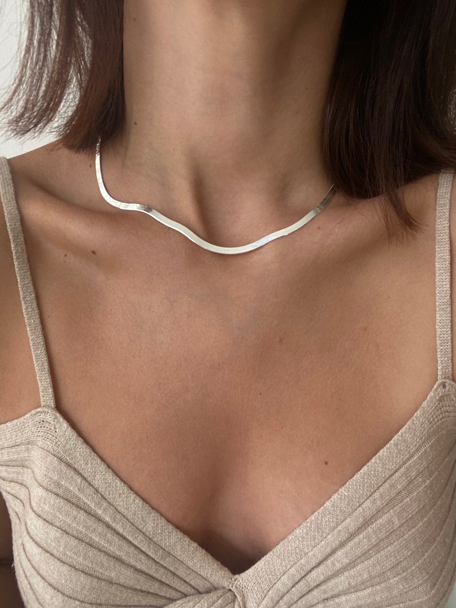 Sterling Silver Herringbone Chain Choker Necklace - Etsy UK