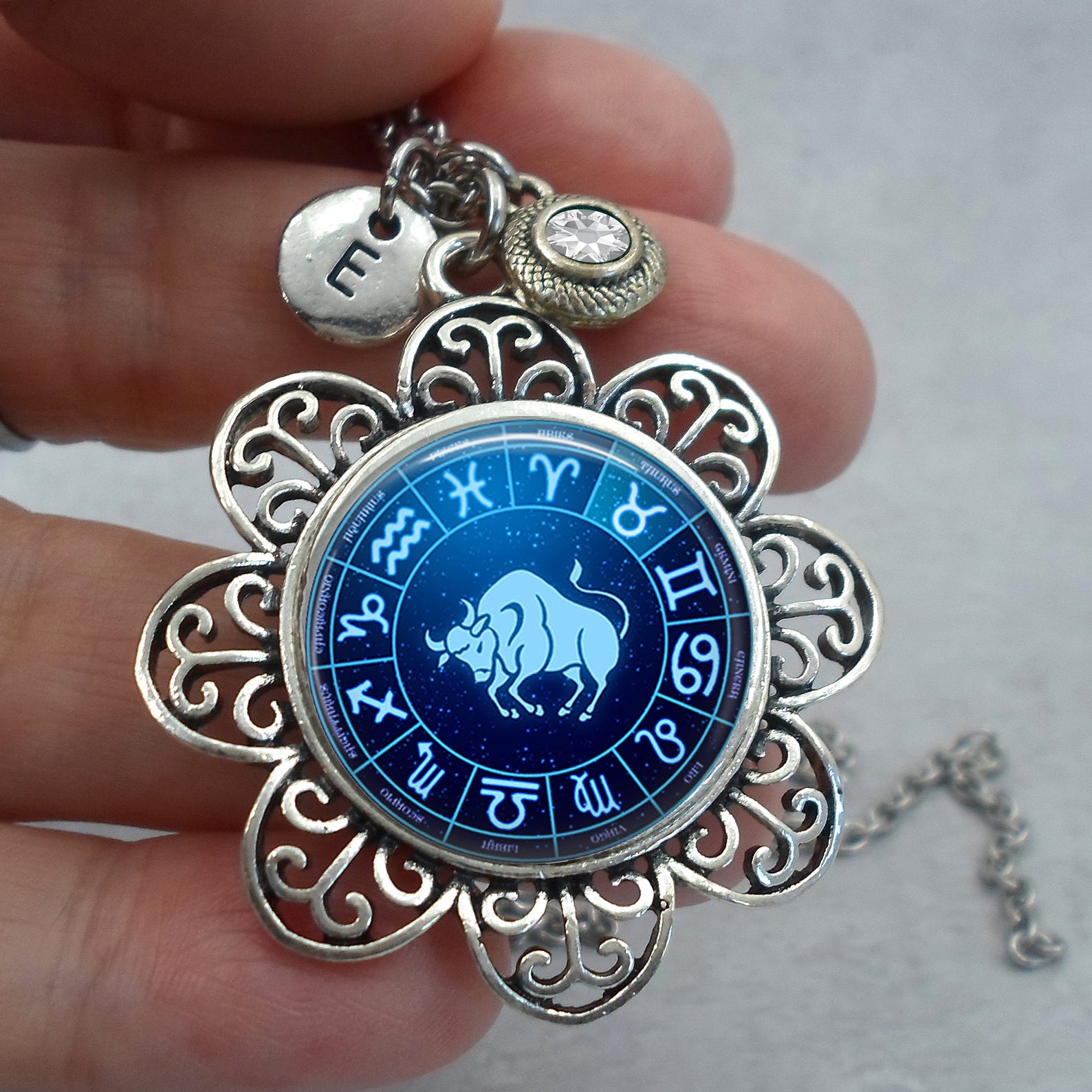 Taurus Zodiac Necklace w-Swarovski Birthstone Crystal & Letter | Etsy