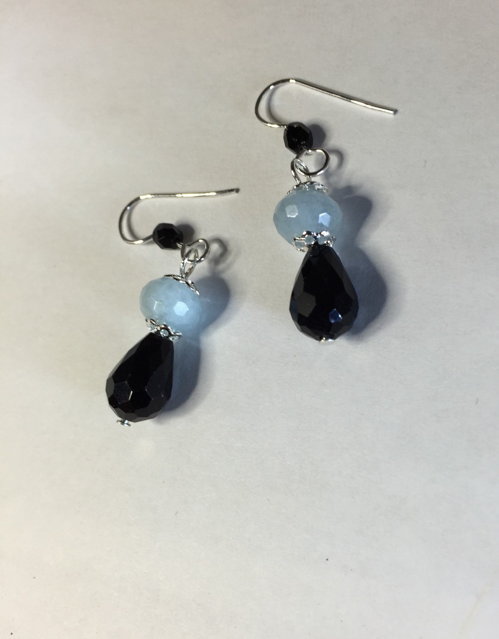 Genuine Aquamarine Earrings With Faceted Black Crystal - Etsy