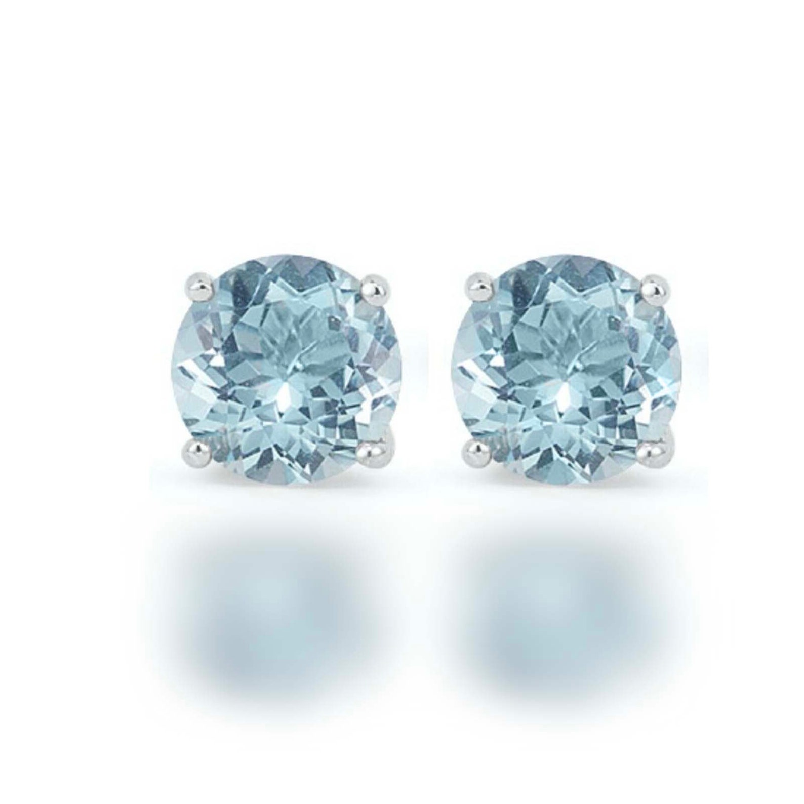 Round Natural Genuine Aquamarine Earrings Stud 925 Sterling | Etsy