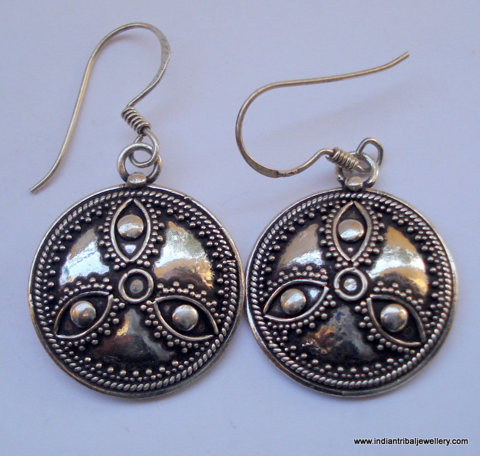 Tribal Earrings, Silver Tribal Earrings, Round Earrings, Dangle, Drop, Tribal Silver, Berber