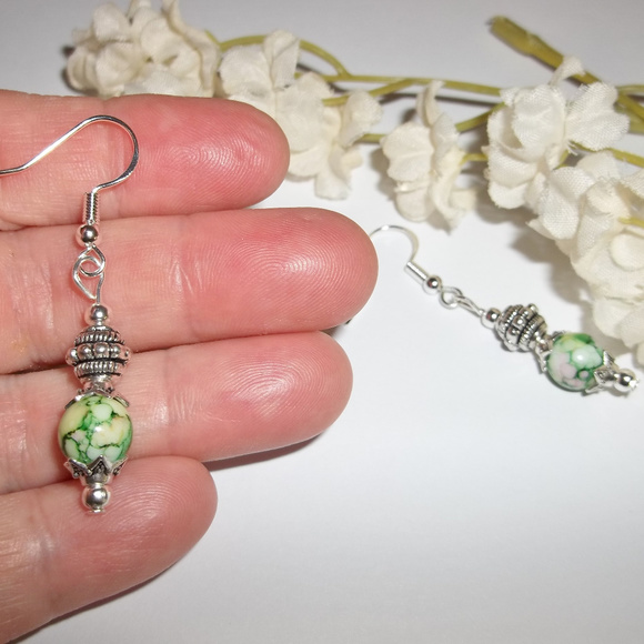 wvluckygirl | Jewelry | Green Earring Set Handmade Marbled Design Nwt 459 | Poshmark