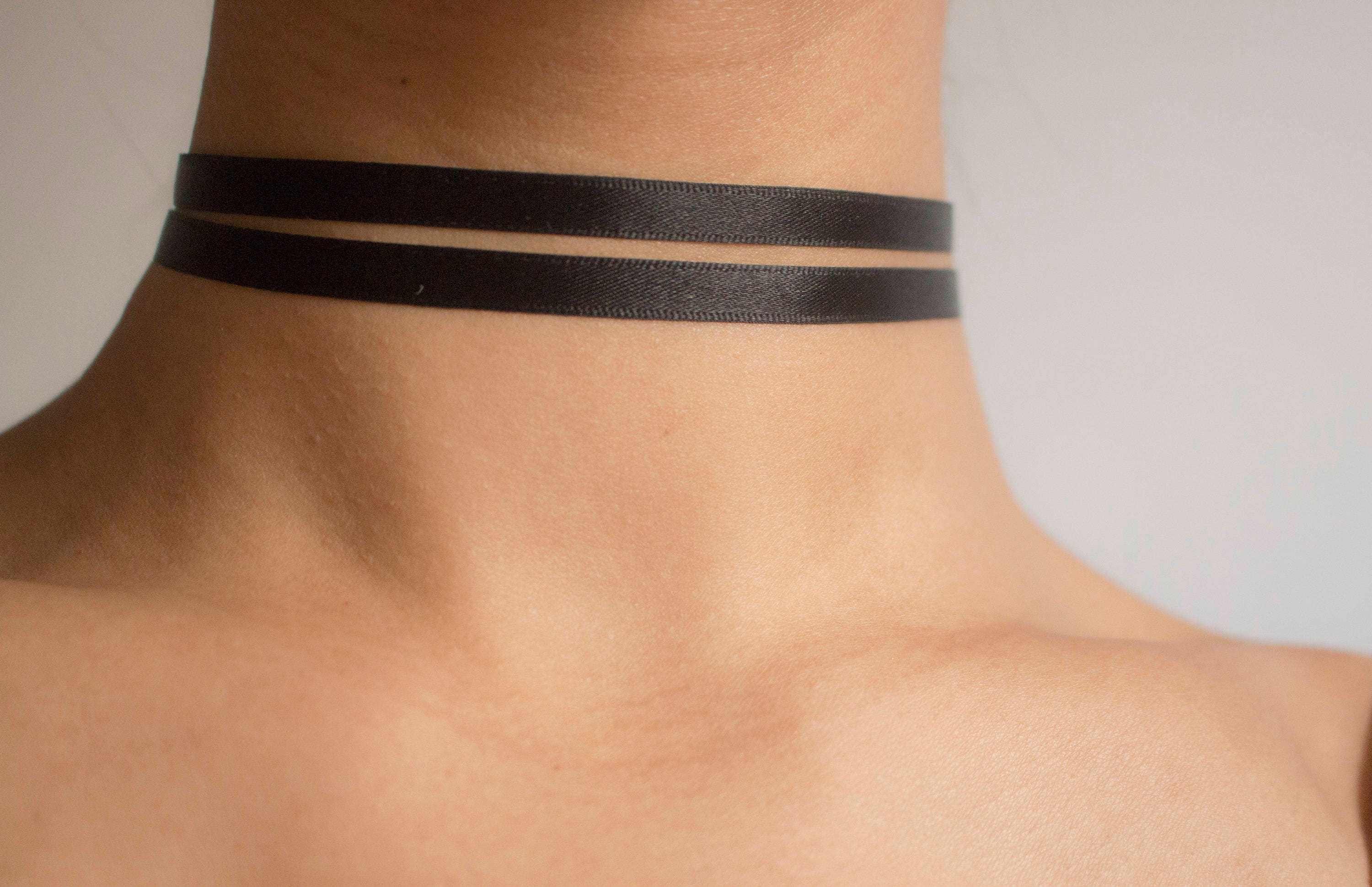 Black Double Satin Ribbon Choker Black Satin Choker Necklace | Etsy