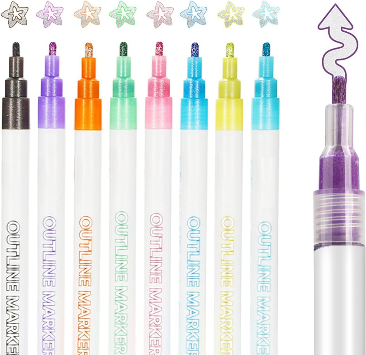 Amazon.com: GCVOPTON 12 Colors Double Line Outline Pens, Outline Markers Self-outline Metallic