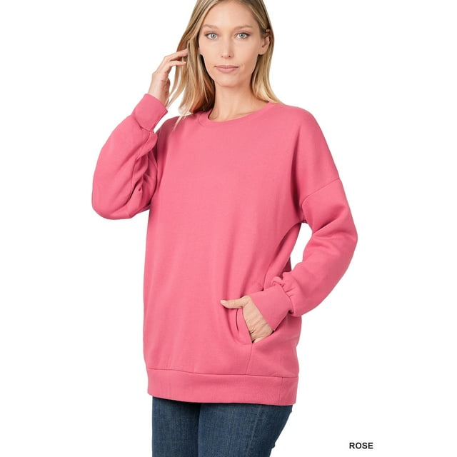 Zenana Women & Plus (S-3XL) Basic Relaxed Long Sleeve Round Neck Sweatshirts w/Side Pockets