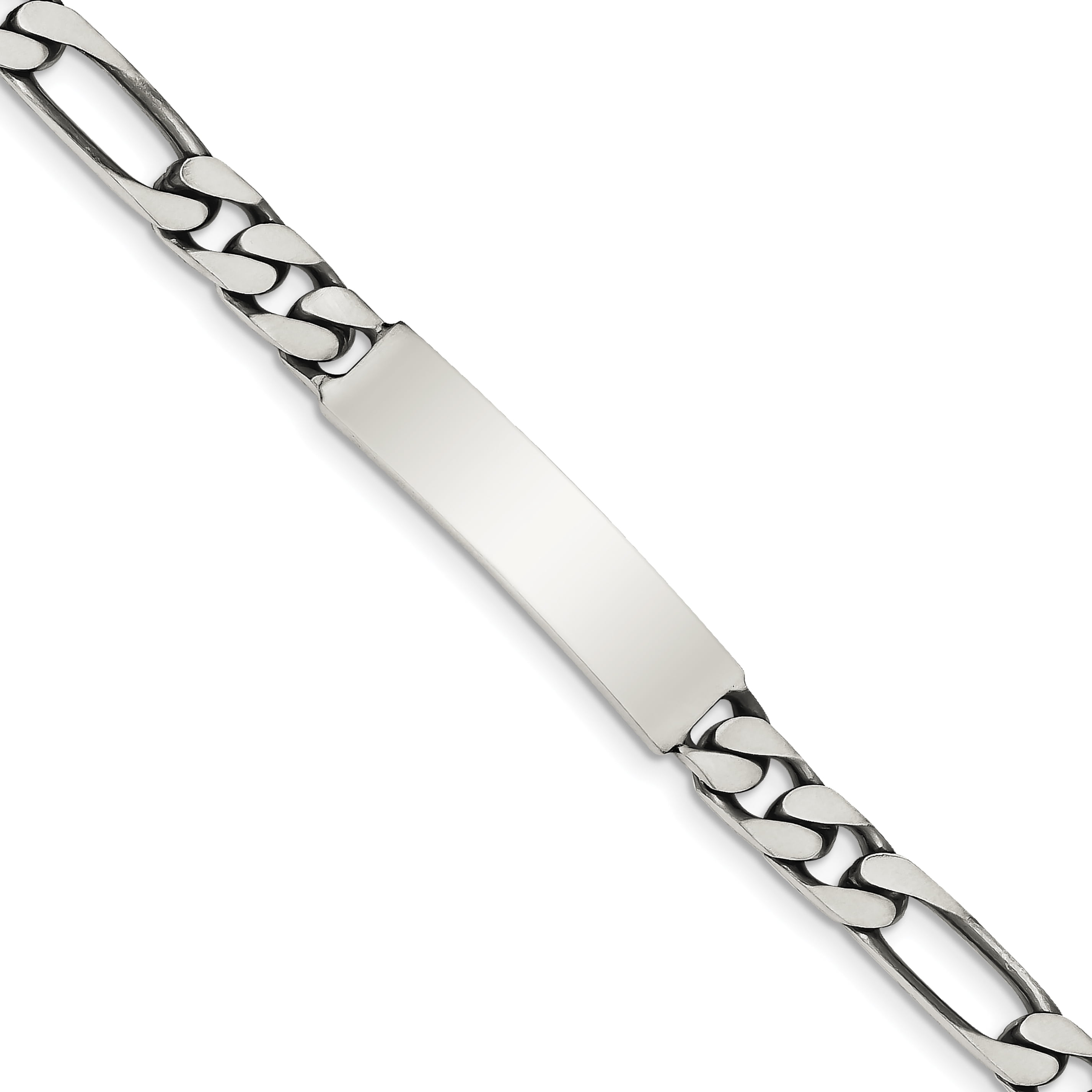 Sterling Silver 8in Engravable Antiqued Figaro Men's ID Bracelet - Walmart.com
