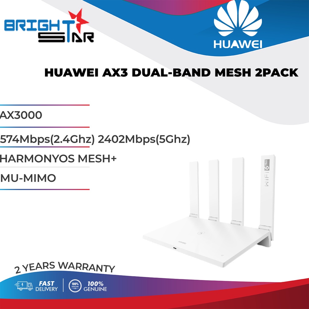 HUAWEI AX3 DUAL-BAND MESH 2PACK / AX3000 / 574Mbps(2.4Ghz) 2402Mbps(5Ghz) / HARMONYOS MESH+ / MU