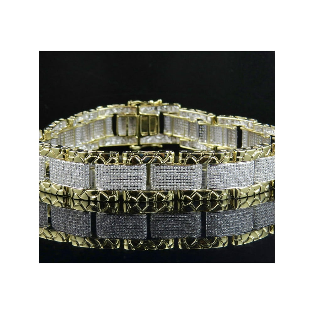 Jewelry Unlimited - Men's Real 10K Yellow Gold Nugget Style Genuine Diamond Designer Bracelet 6