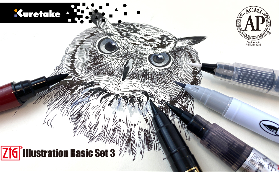 Kuretake ZIG Inktober Special Set, ILLUSTRATION BASIC SET 3 for Manga Drawing, Lettering and